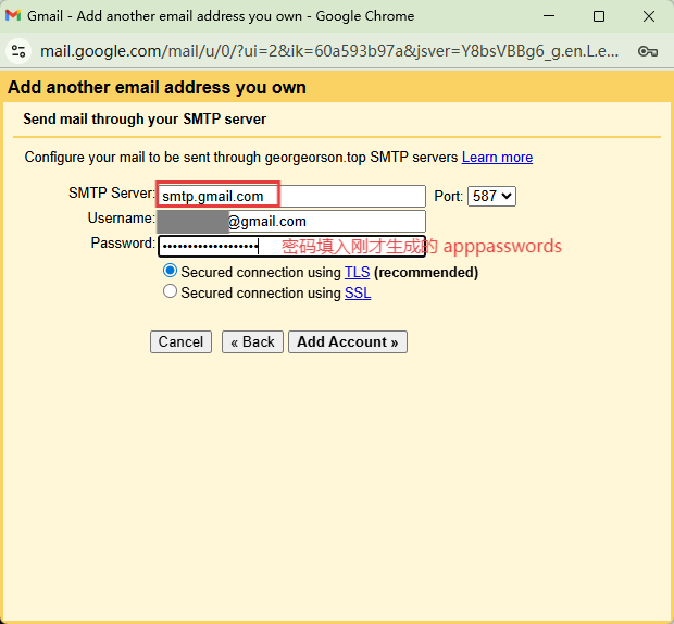 第 5 步:回到前面 在 Gmail 中配置 的第 5 步再次进行配置即可。