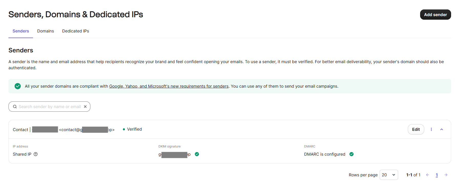 第 2 步:登录进去后,在右上角打开菜单,找到 Senders, Domains & Dedicated IPs