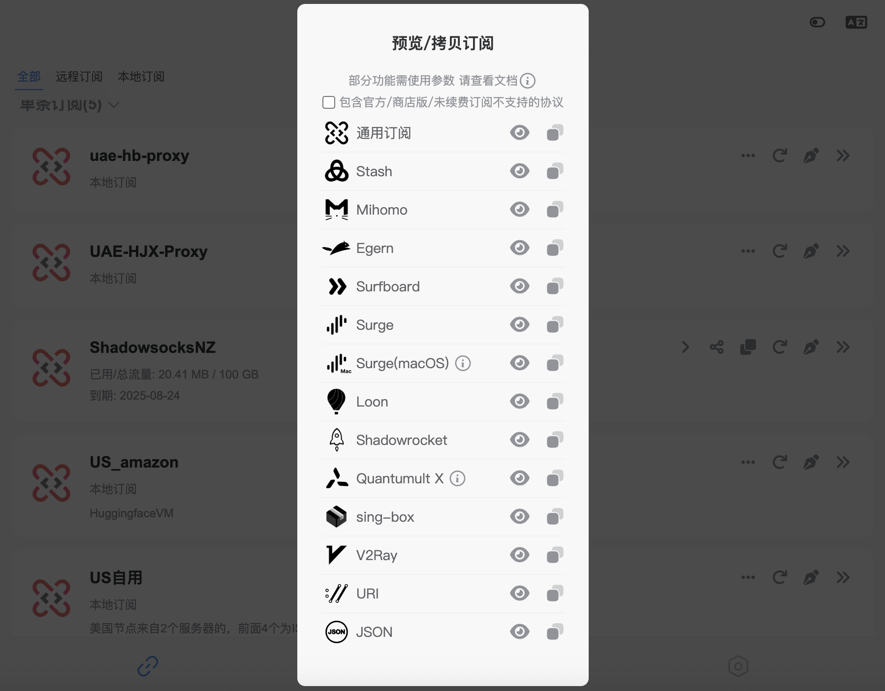 可以利用这个功能,导出适合 Clash 和 Sing-box 等客户端的配置文件。