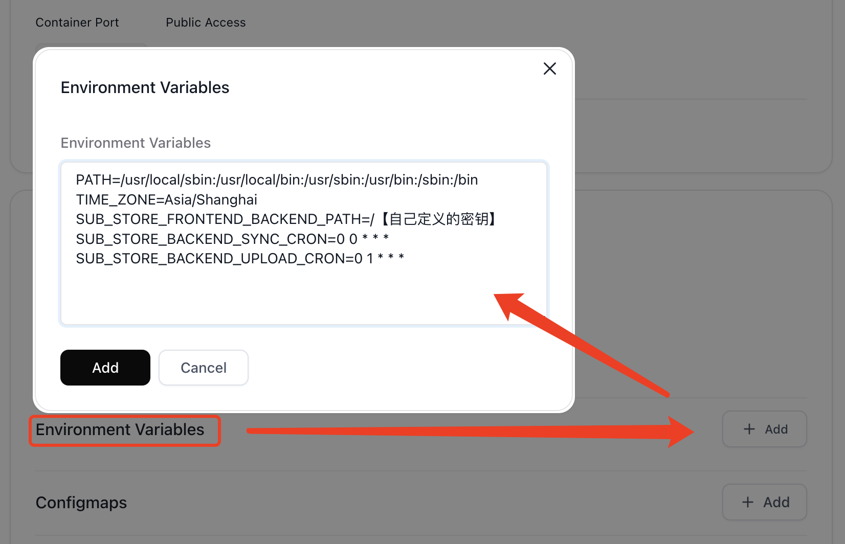 Image Name 填入镜像 xream/sub-store:http-meta