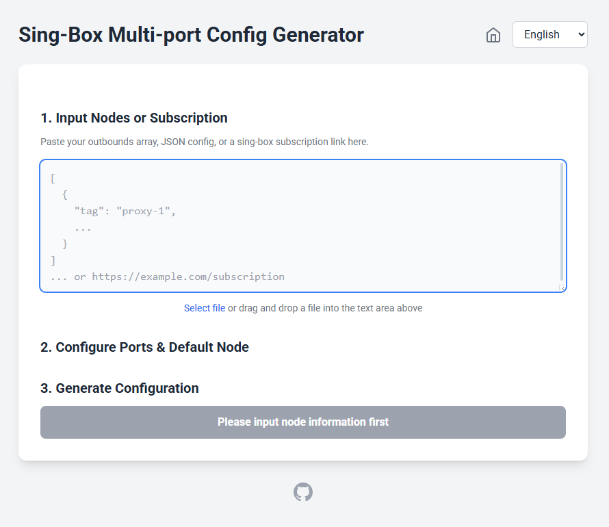最简单的办法就是直接在 Demo 网站上使用,因为这个工具仅通过前端原生 HTML, JavaScript (ESM) 实现,并不保存数据。所有操作均在您的浏览器本地完成,无需后端服务器,确保节点信息的绝对安全和隐私。