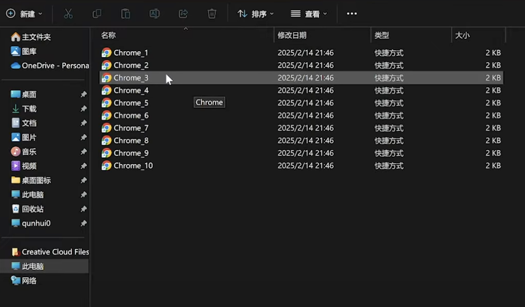 打开 D:\fenliulanqi2\Chrome_ShortCuts,你会看到 10 个 Chrome 快捷方式,例如: